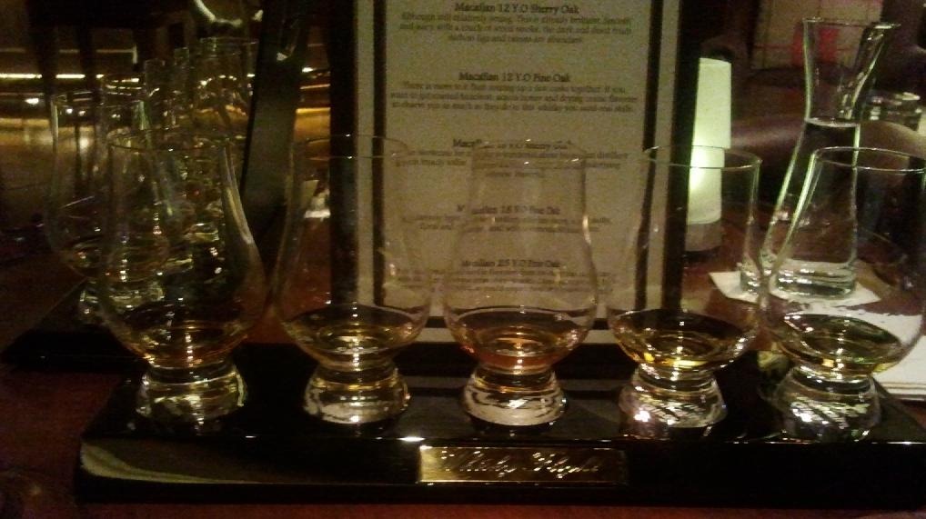 A thick multi-page whisky menu is presented upon being seated. But this being The Macallan Whisky Bar, we simply couldn’t pass up a wonderful sampler of the Macallan. This sonata of 5 small drams consisted of the: