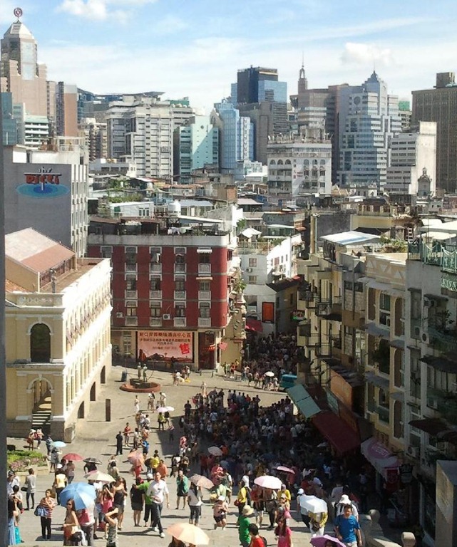 My host met me at the ferry terminal where we caught a cab to Senado Square, the centre of old Macau, where we walked around and chatted, as I took in the Portuguese architecture in sharp contrast to its very Chinese location and the modern towers beyond it.