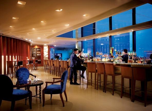The Macallan Whisky Bar appears as staid and true as any old British Gentlemen’s club, with its dark wood veneer, red Persian carpets, large leather sofas and high back comfy wingchairs. While the flagship Macallan range is obviously showcased here, the bar is well stocked with over 360 whiskies from all over the world.