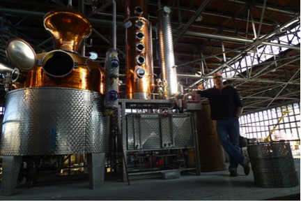 St. George’s distillery is on the same premises as that of Hangar One Vodka, which is in an isolated airplane hangar in the old Alameda Naval Air Station.