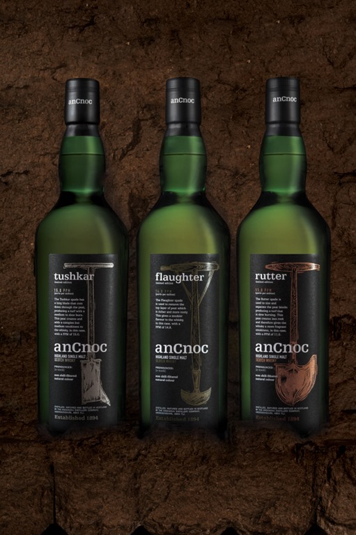 range. Peated whiskies from Knockdhu Distillery, named Rutter, Flaughter