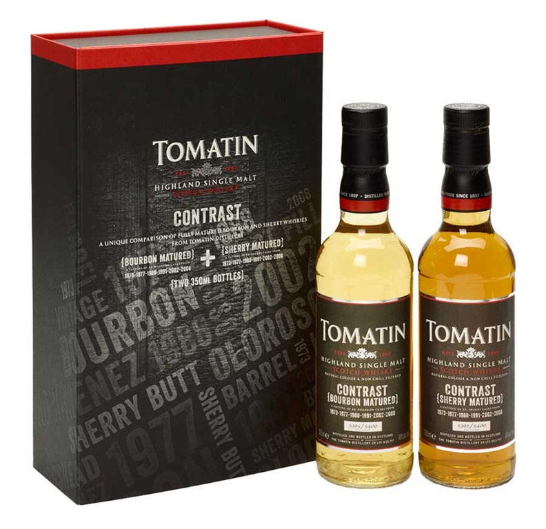 Tomatin has been making a lot of good whisky lately, with many special releases aimed at the serious (or aspiring) Whisky Geek. Take a look at the “Cuatro” series (reviewed here) , and the other two releases (mainly for NL/DE) in which they paired the sherry in which the whisky was aged with the whisky (PX, and Oloroso and 2 single casks). It’s exciting to taste whisky that way, isn’t it? The Contrast is another combo, this time of two whiskies (no sherry here), which share a common vatting (vattings from the same six years (1973, 1977, 1988, 1991, 2002 and 2006), but one of which was only matured in ex-Bourbon casks, while the other vatting was matured only in ex-Sherry casks. This way you can see how a similar spirit, gets altered in different ways (matured one would argue, is more befitting). A solid idea. The Contrast is not a new whisky, it’s been here for quite some time now ( a year almost), and Is still available online,which is really surprising as it is really good, even if you’re not into comparing, and it was quite limited to 5,400 boxes of two 0.35L bottles. Let’s go, starting with the Ex-Bourbon.