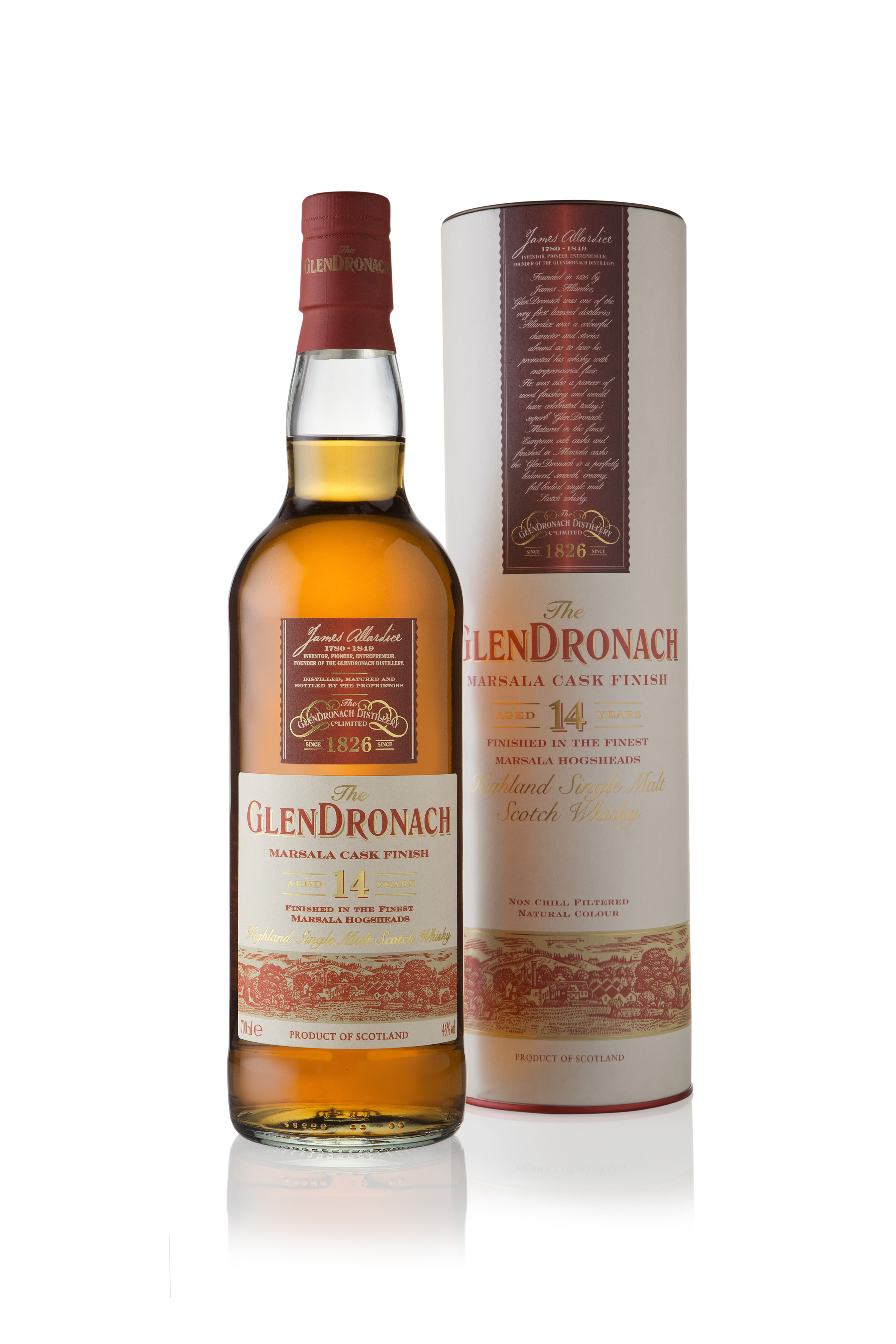 The GlenDronach Marsala Wood Finish Aged 14 Years was first matured in European oak casks and thereafter spent its finishing period in Marsala hogsheads. Marsala is a fortified wine produced on the Italian island of Sicily. Ready for some sweet nectar?