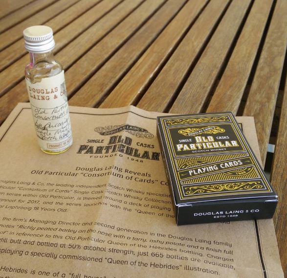Laing’s “Old Particular” is a unique series of individually hand-selected aged Single Cask Malts and Single Cask Single Grains from all over Scotland. Each is bottled exactly the way the distiller intended: Without coloring, or chill-filtration.The new Old Particular Consortium of Cards Collection is a series of four limited edition Single Cask releases, beginning with the “Queen of the Hebrides”, this Old Particular Laphroaig 18 Years Old. Distilled in December 1998, it was bottled at 50% after 18 long years spent maturing in a Refill Butt. It is one of 665 bottles available.
