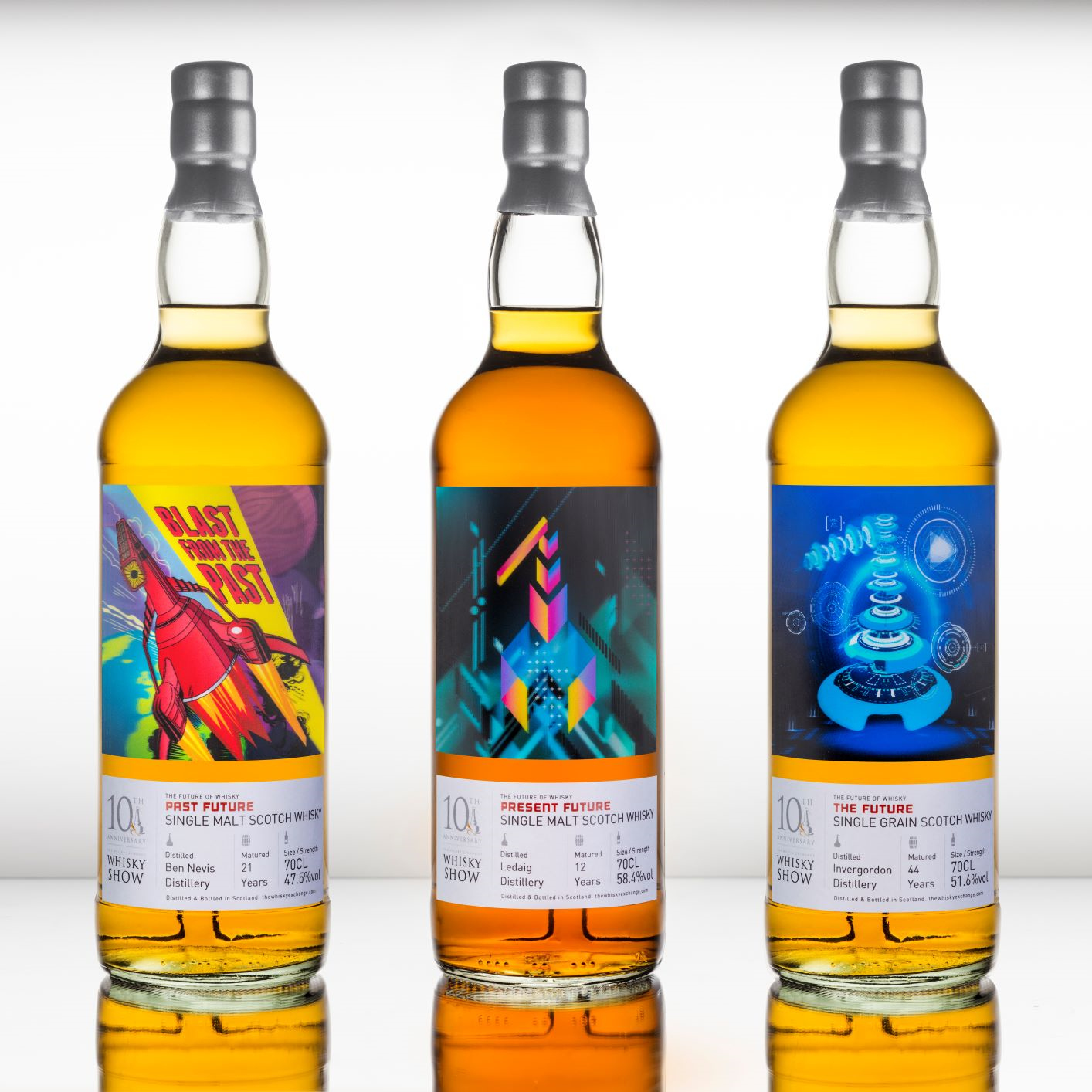 In what is believed to be a first for whisky bottles, lenticular printing gives each label a feeling of depth and movement, as well as helping each whisky embrace the show theme. The whiskies are presented as ‘Past Future’ (what they thought the future would be in the past), ‘Present Future’ (what they presently think the future will be), and ‘The Future’ (what they think the future might be in the future!), quite nice.